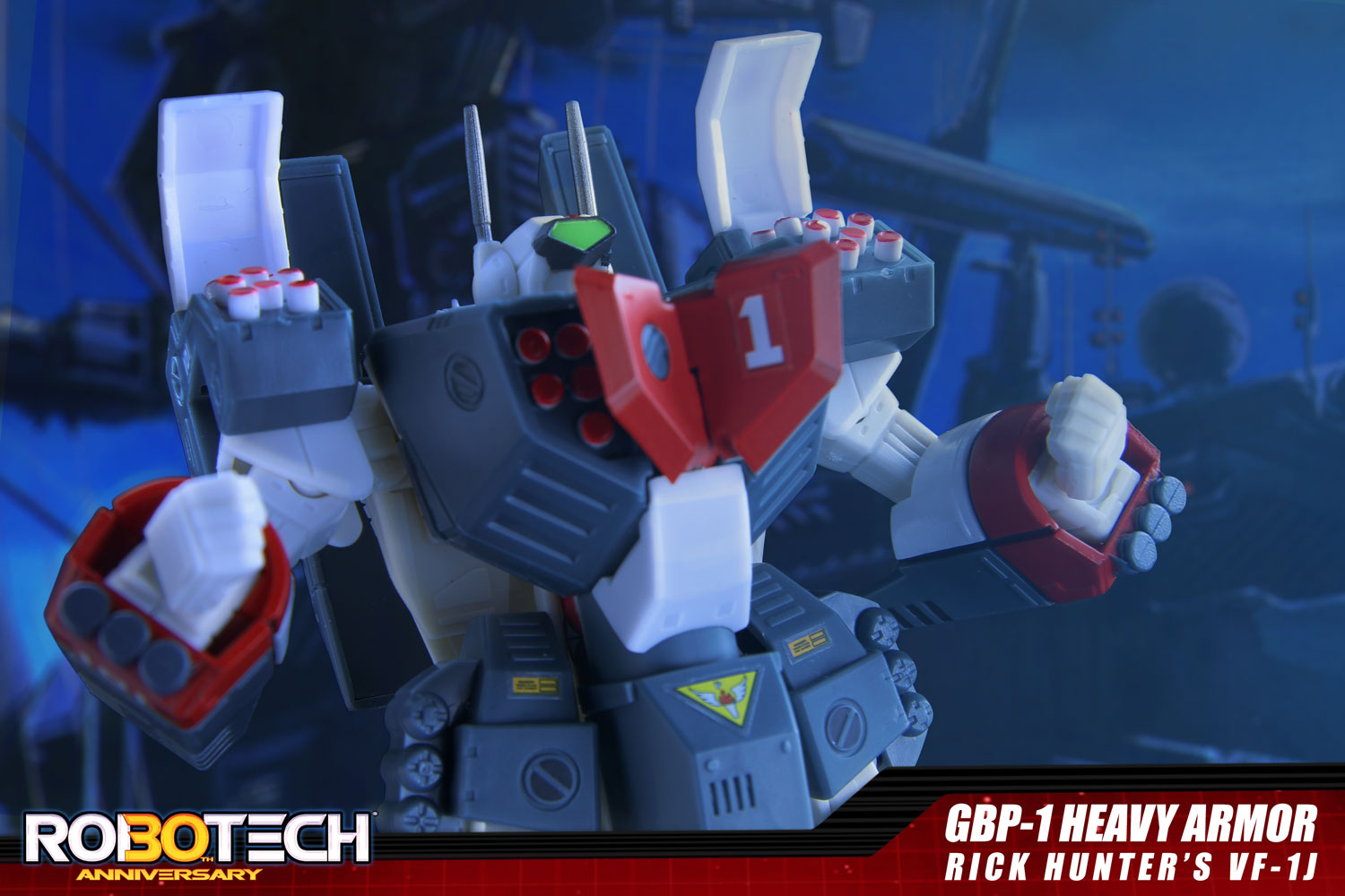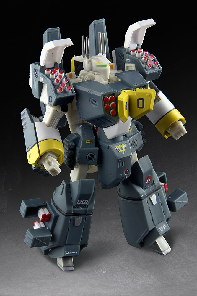 The Armored Veritech GBP-1 system allows a single VF-1 fighter to wield the artillery firepower of an entire squadron. The armor is able to withstand several withering barrages from enemy fire, but prevents the Veritech from transforming into fighter mode, and must be jettisoned if the pilot needs maneuverability. *Heavy Armor accessories can only be used in Battloid mode.